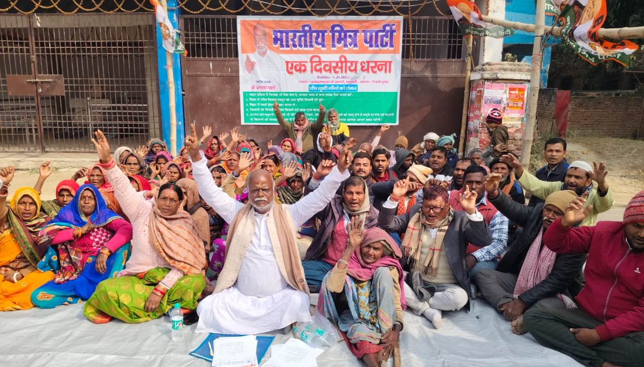 मधुबनी- 15 जनवरी। भारतीय मित्र पार्टी के कार्यकर्ताओं ने पार्टी के राष्ट्रीय अध्यक्ष धनेश्वर महतो नेतृत्व में समाहरणालय के सामने पांच सूत्री मांगों को लेकर धरना दिया। धरना को सम्बोधित करते हुए कहा कि राष्ट्रीय अध्यक्ष धनेश्वर महतो ने कहा कि सहारा इंडिया कंपनी में बिहार के जनता का 90 प्रतिषत पैसा जमा है। सहारा कंपनी बंद होने के बाद सभी का पैसा फंसा हुआ है। उन्होने कहा कि केन्द्र सरकार से मांग करते हैं कि शीघ्र भुगतान करें। अगर सहारा इंडिया कंपनी गरीबों को पैसों का भुगतान नही करती है, तो इसके खिलाफ भारतीय मित्र पार्टी आन्दोलन करेगी। श्री महातो ने बिहार सरकार से मांग करते हुए कहा कि गरीब किसान मजदूर को 200 यूनिट बिजली फ्री करें। बिहार में स्मार्ट मीटर को सरकार वापस ले। किसानों को सिंचाई के समय बिजली एवं खाद मुफ्त करे। दरभंगा एवं मधुबनी में जितने भी चीनी मिल है जैसे रैयाम,लोहट एवं सकरी इन मीलों को चालू कराए, ताकि समूचे दरभंगा एवं मधुबनी के किसानों को इसका फायदा मिले। धरना में पार्टी के महिला सेल राष्ट्रीय अध्यक्ष बीणा देवी,जिला अध्यक्ष राजेश कुमार महतो,ललित कुमार सिंह, दिलीप कुमार,संजय कुमार सिंह,राम अवतार यादव,राजेश महतो,रामबाबू चैधरी,चंदन कुमार,सचिन कुमार सहित सैकड़ों के संख्या में पार्टी कार्यकर्ता मौजूद थे।