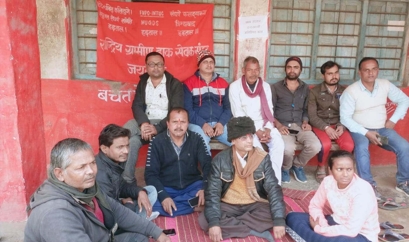 मधुबनी- 12 दिसंबर। राष्ट्रीय ग्रामीण डाक सेवक संघ के आह्वान पर सात सूत्री मांगों को लेकर मंगलवार से ग्रामीण डाक सेवक हड़ताल पर चले गए। जिस कारण मंगलवार से डाक सेवा प्रभावित हो गयी। जयनगर उप डाकघर के अधीन सभी 19 शाखा डाकघर के कर्मी अनिश्चितकालीन हड़ताल पर चले गए हैं। जिससे डाकघरों में प्रतिदिनों की तरह कामकाज नही हुआ। ग्रामीण डाक सेवक कर्मी रामेश्वर साहु के नेतृत्व में सभी 19 शाखा डाकघर कर्मी हङताल का समर्थन करतें हुए कार्य का बहिष्कार किया। धरना पर बैठे डाक कर्मियों ने बताया कि हमारी मांगों में आठ घंटे काम एवं पेंशन के अलावे सभी तरह का लाभ दिया जाए। नियमित कर्मचारियों के समान 01 जनवरी 16 से संबंधित निरंतरता भत्ता को 12, 24 एवं 36 वर्ष की सेवा पूरी करने पर तर्कसंगत निर्धारण,वरिष्ठ नागरिकों,वंचिंग के लिए वेटेज वृद्धि,समयबद्ध वित्तीय उन्नयन सहित कमलेश चंद्र समिति की सभी सकारात्मक सिफारिशों को तत्काल कार्यान्वयन किया जाये। समूह बीमा कवरेज को पांच लाख रूपये तक बढ़ाने,विभागीय कर्मचारियों के साथ समानता में जीडीएस ग्रेच्युटी में वृद्धि करने,180 दिनों तक की सवैतनिक छुट्टी को आगे बढ़ाने और उसका नगदीकरण करने,जीडीएस एवं उनके परिवार के सदस्यों को चिकित्सा सुविधा मुहैया कराने का प्रावधान को लागू करने की मांग करते हुए कहा कि सभी प्रोत्साहन योजनाओं प्रणालियों को समाप्त करें। तथा जीडीएस द्वारा किए गए सभी कार्यों में आईपीपीबी,पीएलआई,बचत योजनाएं एवं एमजीएनआरईजीएस को उनके कार्यभार मूल्यांकन में शामिल की जाये। कर्मियों ने कहा कि व्यावसायिक लक्ष्यों के रूप में जीडीएस द्वारा सामना किए जाने वाले सभी प्रकार के उत्पीड़न को रोकें। तथा उन्हें फेसबुक और इंस्टाग्राम जैसे सोशल मीडिया प्लेटफॉमों का पालन करने की उनकी इच्छा या क्षमता के विरुद्ध अपने स्वयं के मोबाइल उपकरणों का उपयोग करने के लिए मजबूर करें। सेवाओं को बढ़ाने और तेज करने के लिए सभी शाखा कार्यालयों को लैपटॉप,प्रिंटर एवं ब्राडबैंड नेटवर्क उपलब्ध कराने समेत अन्य मांग शामिल हैं। कर्मी के हड़ताल पर चले जाने के कारण डाकघर में होने वाले कामों में खाता संधारन लेनदेन,पार्सल,रजिस्ट्री,स्पीड पोस्ट एवं डाक वितरण कार्य प्रभावित रहा। ग्रामीण डाक सेवक खगेश्वर यादव,सबनम कुमारी,शत्रुध्न यादव,राम चलित्तर पासवान,आदित्य झा,विपिन बिहारी,शम्भु यादव,दिनेश कुमार यादव,राज कुमार साह आदि हड़ताल का समर्थन करते हुए धरना पर बैठे रहे।