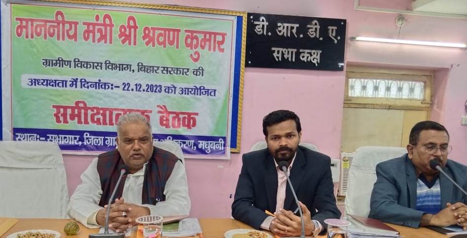 MADHUBANI:- ग्रामीण विकास मंत्री ने विभिन्न विकास योजनाओं को लेकर की अधिकारियों के साथ बैठक, कहा- मनरेगा जॉब कार्ड धारियों का भुगतान आधार बेस पर करना हरहाल में सुनिश्चित करें