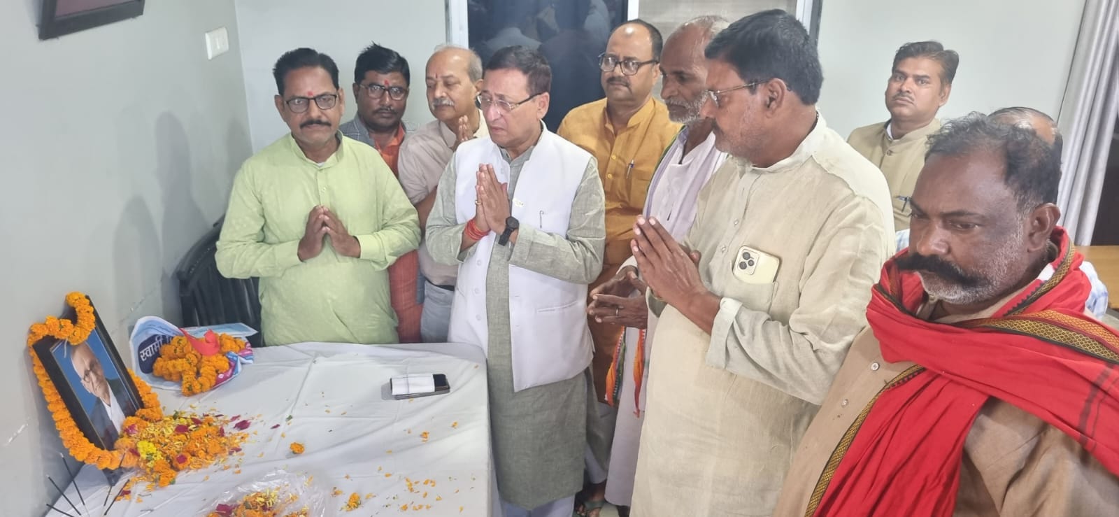 मधुबनी- 15 नवंबर। श्रीश्री 108 महाशक्ति नव दुर्गा पूजा समिति गिलेशन के अध्यक्ष व अधिवक्ता जेपी सेनानी जगन्नाथ महतो के निधन पर शहर के गिलेशन बाजार स्थित श्रद्धांजलि सभा का आयोजन किया गया। श्रद्धांजलि सभा में उद्योग मंत्री समीर कुमार महासेठ व अन्य लोगों ने अधिवक्ता जगन्नाथ महतो के चित्र पर पुष्पांजलि कर श्रद्धांजलि अर्पित किया। सभा को संबोधित करते हुए उद्योग मंत्री समीर कुमार महासेठ ने कहा कि जगन्नाथ महतो अधिवक्ता के रूप में सदैव शोषित समाज को उनका हक दिलाने में अग्रसर रहे। गिलेशन दुर्गा पूजा समिति के अध्यक्ष के पद पर रहते हुए दशकों तक सफलतापूर्वक पूजा का आयोजन कराते रहे। समाज को उनकी कमी खलेगी। उनके विचारों को अपनाकर समाज को नई दिशा प्रदान किया जा सकता है। मंत्री ने कहा कि जगन्नाथ महतो जेपी सेनानी के रूप में सदैव शोषण के खिलाफ लड़ाई लड़ते रहे। जेपी आंदोलन में उनकी सक्रियता जिले में जेपी आंदोलन को मजबूती प्रदान करता रहा। समाज सेवा के क्षेत्र में उनका अहम योगदान रहा है। उन्होंने अंतिम समय तक समाज के प्रति अपनी सक्रियता बहाल रखते हुए लोगों को कर्मयोगी बनने की सीख दी है। श्रद्धांजलि सभा में राजेंद्र प्रसाद,मिथिलेश प्रधान,अशोक कुमार नायक, अखिलेश साह,प्रदीप राउत,मधुकर राउत,नागेंद्र राउत,अशोक साह,राजेश खर्गा,जीवछ यादव,शिव कुमार प्रधान,अमरेंद्र मंडल सहित अन्य ने हिस्सा लिया।