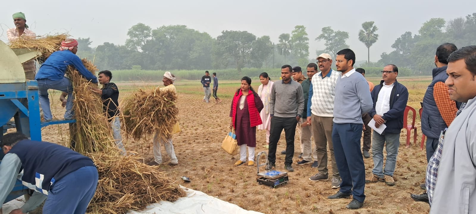 MADHUBANI:- डीएम किसान के खेतों में पहुंचकर अगहनी धान फसल कटनी प्रयोग का किया निरीक्षण