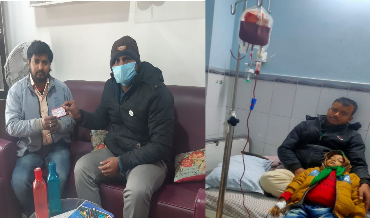 बीते दिन झंझारपुर, कैथिनिया के एक 7 साल के बच्चा के लिए खून की आवश्यकता पड़ी । बच्चे का हेमोग्लोबिन कम था। रक्त चढ़ाना अत्यंत जरूरी था। परिजन संस्था से संपर्क किया। संस्था द्वारा एक यूनिट ब्लड बच्चा के लिए प्रदान किया गया। साथ एक 26 वर्षीय महिला जिनका प्लेटलेट 40000 हो गया था, स्तिथि विरल थी।  उनको प्लेटलेट चढ़ाना अत्यंत जरूरी था। परिजन डॉक्टर के डिमांड अनुसार पूर्ति नही कर पा रहे थे और चिंतित थे। संस्था से संपर्क उपरांत 2 यूनिट प्लेटलेट प्रदान किया गया।