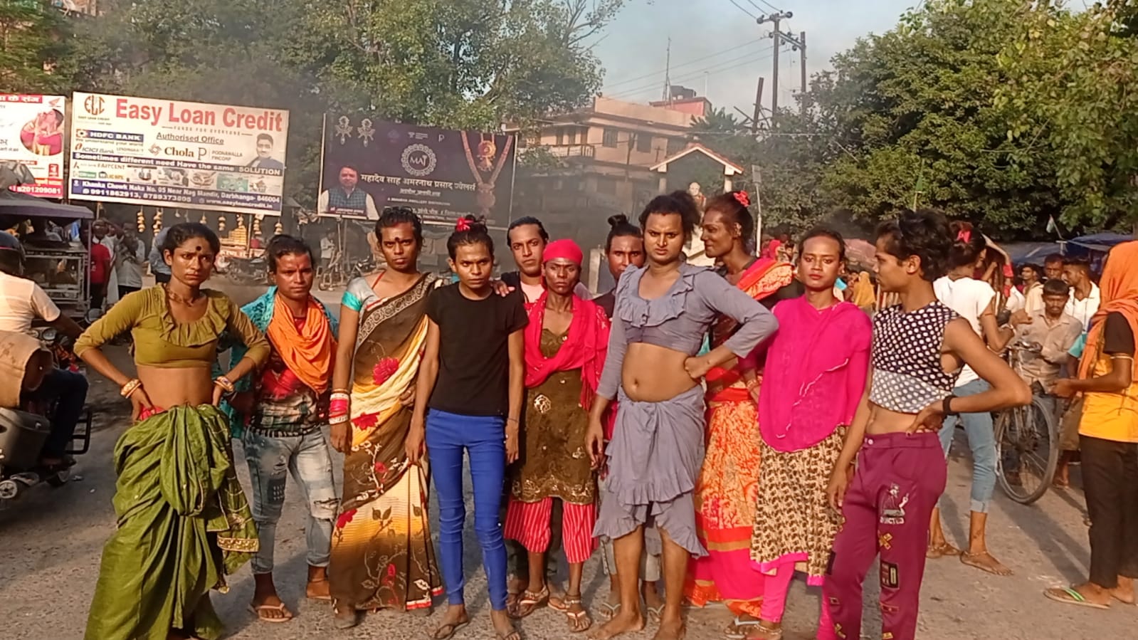 मधुबनी- 09 अक्टुबर। सीमावर्ती शहर जयनगर में दूसरे राज्यों से आए किन्नरों के कारण स्थानीय किन्नरों के रोजगार प्रभावित होने के कारण रविवार को किन्नरों के समूह के द्वारा जयनगर थाना चोक एवं रेलवे स्टेशन चोक पर टायर जला कर सङक को जाम कर अपनी मांगों के समर्थन में पुलिस प्रशासन के खिलाफ आक्रोश व्यक्त करते हुए नारेबाजी की। किन्नरों के द्वारा सड़क जाम करने के क्रम में किन्नरों और वाहन चालकों के बीच हल्की नोकझोंक भी हुई। घंटों जाम रहने के कारण यातायात प्रभावित हुआ।