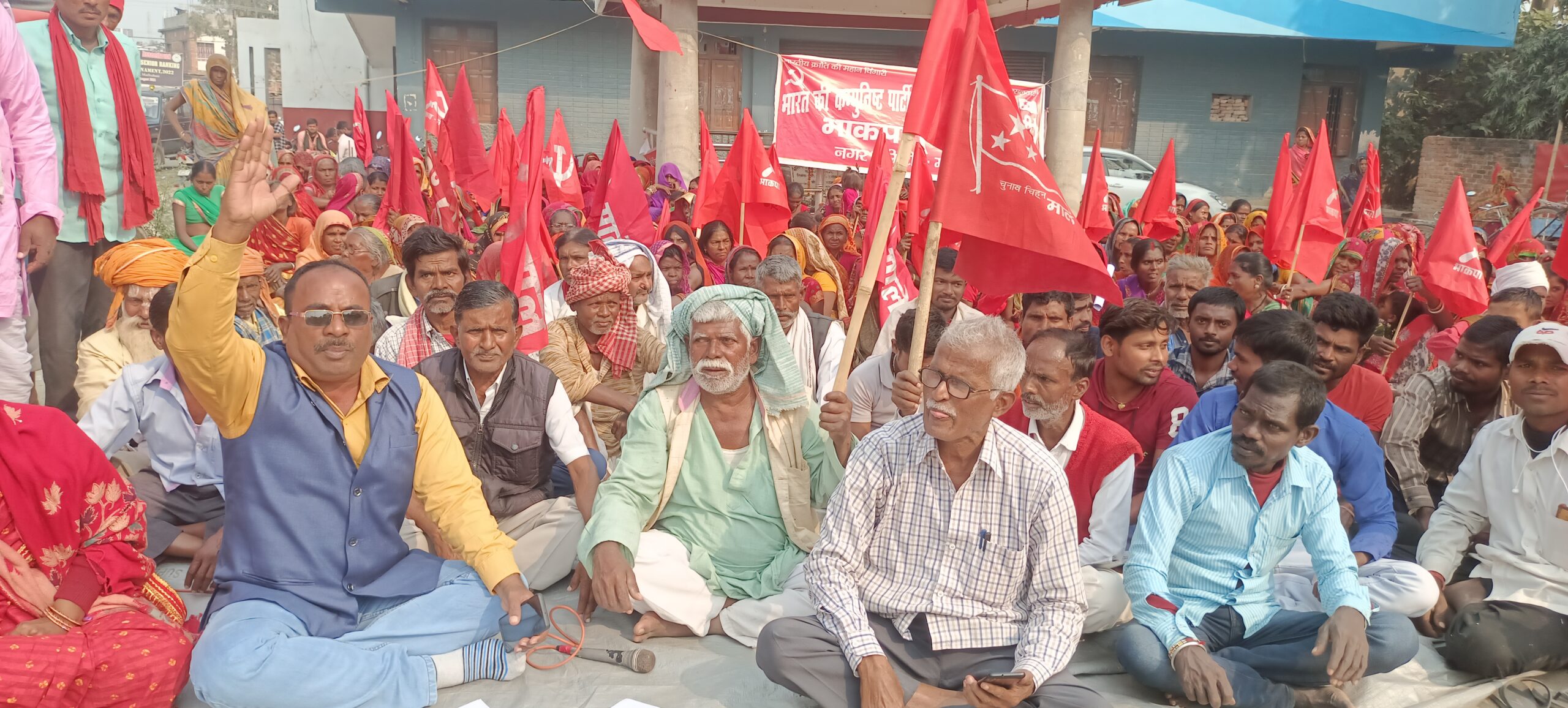 मधुबनी- 21 नवंबर। भाकपा माले नगर कमिटी मधुबनी एवं राजनगर प्रखंड कमिटी के द्वारा संयुक्त रूप से जिला समाहरणालय के समक्ष 12 सूत्री मांगें को लेकर जिला कमिटी सदस्य माले नेता उत्तिम पासवान,विशंभर कामत,सज्जन सदाय एवं राजेंद्र यादव के नेतृत्व में कार्यकर्ताओं ने प्रदर्शन किया। प्रदर्शकारियों को संबोधित करते हुए जिला सचिव ध्रूव नारायण कर्ण ने कहा कि राजनगर थाना कांड संख्या-15/22 को वैज्ञानिक वो सूक्ष्मतम शोध करें। तबतक अभियुक्तों की गिरफ्तारी पर रोक लगे, राज्यपाल के आदेश से जिला समाहर्ता, मधुबनी द्वारा प्रकाशित भू-हदबंदी वाद संख्या-4/73-74 से भौआड़ा गंगासागर में अर्जित भूमि में से 11 एकड़ 99 डिसमल जमीन पर महादलित पर्चाधारियों को दखल कब्जा दिया जाए। दलित गरीबों के पर्चावाली एवं धार्मिक न्यास और मठ मंदिर की जमीन बेचने वाले सामंती भू-माफिया पर अपराधिक मुकदमा दर्ज कर उन्हें जेल भेजा जाए। माले नगर-लहेरियागंज, न्यू माले नगर-कैटोला,नया नगर-नरकटिया में वर्षों पूर्व से बसे भूमिहीन परिवारों को वासगीत पर्चा दिया जाए और उसे पक्का मकान दिया जाए।
