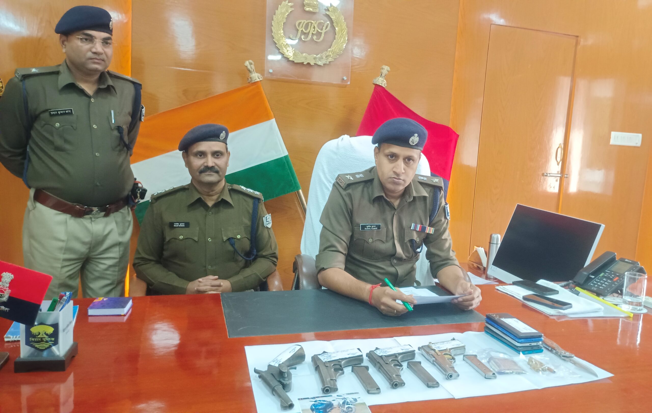 मधुबनी- 14 दिसबंर। बुधवार की रात बड़ी घटना को अंजाम देने को लेकर योजना बना रहे पांच युवक को रंगे हाथों गिरफ्तार किया है। उक्त कार्रवाई गुप्त सूचना के मिलने पर सकरी थाना के पुलिस ने त्वरित कार्रवाई करते हुए पांच युवक को भवानीपुर नवादा पक्की सड़क के पास से गिरफ्तार किया। सभी युवक बड़ी घटना को अंजाम देने के फिराक में थे। उक्त बातें पुलिस अधीक्षक सुशील कुमार ने अपने कार्यालय कक्ष में बृहस्पतिवार को आयोजित प्रेस कांफ्रेंस में कहा। एसपी श्री कुमार ने बताया कि उक्त कार्रवाई गुप्त सूचना के आधार पर किया गया। उन्होने बताया कि डकैती की योजना बनाए जाने की सूचना सकरी थाना को मिली। सकरी थाना की सूचना पर सदर अनुमंडल पुलिस पदाधिकारी राजीव कुमार के नेतृत्व में विशेष छापेमारी टीम का गठन किया गया। जिसमें सकरी थानाध्यक्ष अमृत कुमार,तकनीकी कोषांग अजीत प्रसाद,सकरी थाना के सपन कुमार,राजू कुमार,वीरेंद्र कुमार यादव,सुरेश कुमार,मनोहर कुमार,अमन कुमार,रंजन कुमार,दीपक कुमार,प्रभु नाथ चैरसिया शामिल किया गया। विषेष टीम ने उकत स्थल को चारो ओर घेराबंदी कर छापेमारी किया। जहां पुलिस को आते देख सभी युवक भागने लगे। परंतु पुलिस ने युवक को खदेड़ कर पकड़ लिया। पकड़े गए युवक को तालासी लेने पर तीन देसी पिस्टल,एक देसी कट्टा,पांच जिंदा कारतूस,एक धारदार चाकू,पांच मोबाइल,एक बाईक,एक स्कूटी,भारतीय रुपया पांच सौ बरामद किया। एसपी ने बताया कि हिरासत में लिए गए युवक से पूछताछ किया गया। जिसमें बताया गया कि सकरी बाजार में डकैती करने को लेकर सभी जमा हुए थे। एसपी ने बताया कि सभी अपराधकर्मी का जिले के हर थानों में इतिहास है। उक्त अपराधियों की पहचान बेनीपट्टी थाना क्षेत्र के निवासी विनीत झा के पुत्र अमरजीत झा उर्फ अंकित झा,पंडौल थाना क्षेत्र के गोवर्धन झा का पुत्र अभिषेक झा,पंडौल थाना के कृष्ण झा का पुत्र सुभाष झा,पंडौल थाना क्षेत्र के सुनील चाधरी का पुत्र सोनू चैधरी एवं दयाराम प्रसाद का पुत्र विकाश कुमार चैरसिया के रूप में हुई है। उन सभी के खिलाफ सकरी थाना में कांड दर्ज कर न्यायिक हिरासत में भेजा गया है।