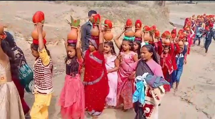 MADHUBANI:- सरस्वती पूजनोत्सव को लेकर बरदाही गांव 108 कुमारी कन्याओं ने निकली भव्य कलश शोभा यात्रा
