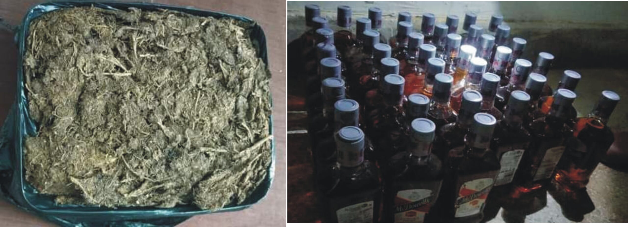 मधुबनी- 08 नवंबर। पंडौल थाना पुलिस ने गुप्त सूचना के आधार पर भारी मात्रा में गांजा और शराब बरामद किया है। पंडौल थानाध्यक्ष ने बताया कि थाना क्षेत्र के हरिपुर चैक से कल्याणपुर के बीच में एक होटल है, जहां अन्य व्यक्ति के द्वारा सूचना मिली कि होटल मालिक जो पंडौल निवासी है। यह दोनों संतोष पांडे एवं सुमित पांडे मिलकर होटल खोले है। जिसमें शराब का कारोबार करता है। सूचना के सत्यापन करने गए। जहां होटल को चारों ओर से घेराबंदी कर दिया गया। होटल के अंदर छापेमारी की गई। जहां रसोई रूम में प्लास्टिक के बोरों में विदेशी शराब 20 बोतल बरामद किया गया। तथा एक काले बैग में 1.7 किलो गांजा भी बरामद किया गया है। मौके पर ही दोनों होटल मालिक को गिरफ्तार कर लिया गया। इस कार्रवाई में सिपाही संजीत कुमार रंजन,अजीत कुमार,महिला सिपाही सीता कुमारी थे।