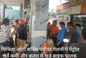 वहीं दुसरी ओर मध्य पूर्व क्षेत्र में हो रहे युद्ध के बीच पेट्रोल पंप संचालक अपने कर्मियों के माध्यम से पेट्रोल की कालाबाजारी करने वालों को भारी मात्रा में पेट्रोल उपलब्ध करा रही है। सोमवार की दोपहर सूड़ी स्कूल स्थित मिथिला ओटो सर्विस पेट्रोल पंप पर बाइक सवार लंबी कतार में खड़े थे, लेकिन कालाबाजारी करने वालों भारी मात्रा में पंप कर्मी द्वारा पेट्रोल उपलब्ध कराया जा रहा था। जिसका बाइक चालकों द्वारा विरोध करने पर आनन फानन में कालाबाजारी करने वालों पेट्रोल देकर भगाया गया। उसके बाद बाइक चालकों को पेट्रोल दिया गया।