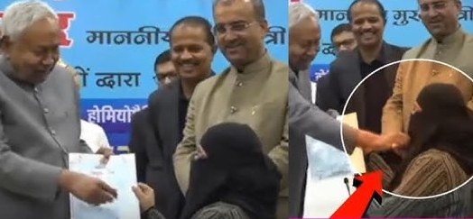 बरेली- 16 दिसंबर। बिहार के मुख्यमंत्री नीतीश कुमार के एक व्यवहार को लेकर मुस्लिम समाज में नाराजगी बढ़ती जा रही है। नौकरी के लिए ज्वाइनिंग लेटर लेने पहुंची बुर्का पहनी एक मुस्लिम महिला के चेहरे से हिजाब/नकाब हटाने की कोशिश किए जाने के आरोप पर आल इंडिया मुस्लिम जमात के राष्ट्रीय अध्यक्ष मौलाना मुफ्ती शहाबुद्दीन रजवी बरेलवी ने तीखी प्रतिक्रिया दी है। उन्होंने इसे मुस्लिम महिला की तौहीन करार देते हुए मुख्यमंत्री नीतीश कुमार से माफी मांगने की मांग की है।