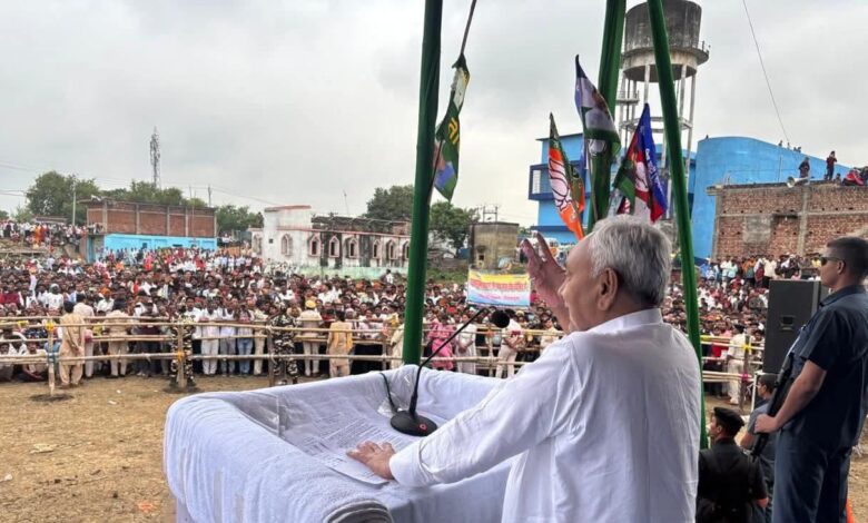 पटना- 30 अक्टूबर। मुख्यमंत्री नीतीश कुमार ने गुरुवार को बेगूसराय,मुंगेर,लखीसराय एवं शेखपुरा में विभिन्न विधानसभा क्षेत्रों से एन०डी०ए० प्रत्याशियों के पक्ष में चुनावी सभा को संबोधित किया।
