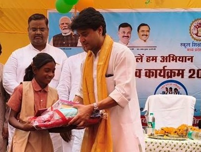 केन्द्रीय मंत्री सिंधिया शनिवार को मध्य प्रदेश के अशोकनगर जिले के ग्राम कचनार के पीएमश्री शासकीय माध्यमिक विद्यालय में स्कूल चलें हम अभियान अंतर्गत प्रवेशोत्सव कार्यक्रम 2026 में शामिल होकर बच्चों को संबोधित कर रहे थे। इस अवसर पर उन्होंने स्कूली छात्र-छात्राओं को पुस्तकों का वितरण भी किया। उन्होंने बच्चों और अभिभावकों को शिक्षा और स्वास्थ्य के महत्व के बारे में जागरूक किया।
