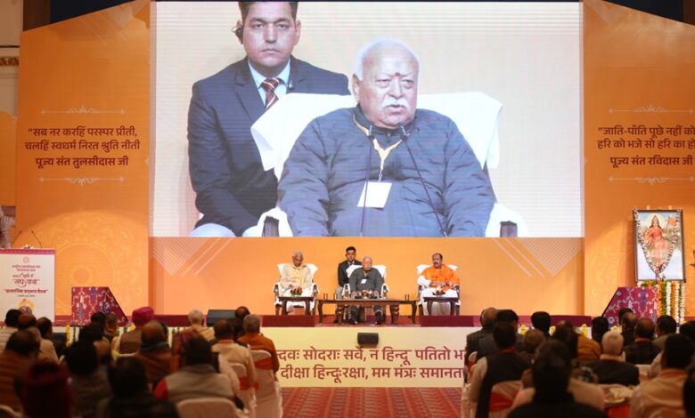 संघ प्रमुख ने कहा कि “कानून समाज को नियंत्रित कर सकता है, लेकिन समाज को चलाने और जोड़कर रखने का कार्य सद्भावना ही करती है। विविधता के बावजूद एकता ही हमारी पहचान है। बाहरी रूप से हम अलग दिख सकते हैं, लेकिन राष्ट्र, धर्म और संस्कृति के स्तर पर हम सभी एक हैं। इसी विविधता में एकता को स्वीकार करने वाला समाज हिंदू समाज है।”