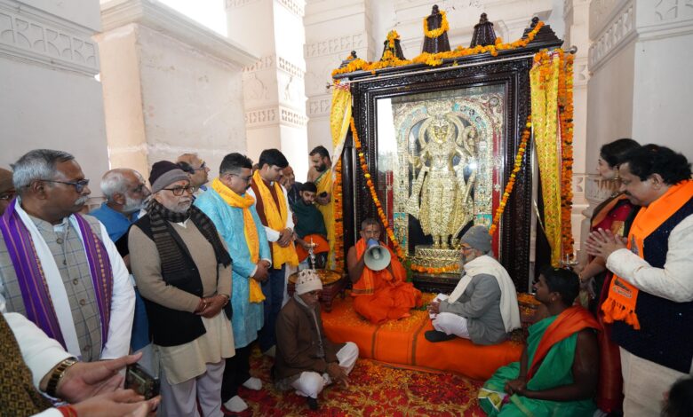कर्नाटक से अयोध्या आई सोने एवं हीरे से जड़ित प्रभु श्रीराम की प्रतिमा, किया गया अनावरण