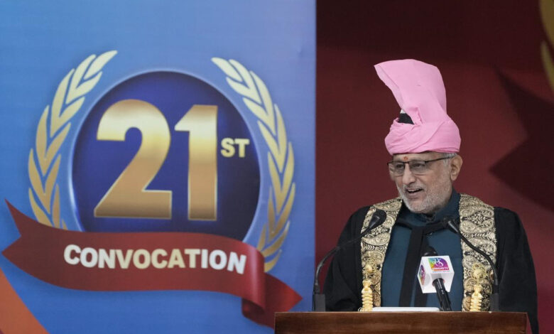 उन्होंने कहा कि एक स्नातक छात्र के रूप में मैं आप सभी से स्वदेशी नवाचार और भारतीय ज्ञान, संसाधनों और आवश्यकताओं पर आधारित समाधानों पर ध्यान केंद्रित करने का आग्रह करता हूं। हमें चिंतित होने की आवश्यकता नहीं है, हमें हीन होने की आवश्यकता नहीं है। हमें सबसे पहले अपनी औपनिवेशिक मानसिकता को त्यागना होगा। उन्होंने कहा कि प्रधानमंत्री नरेंद्र मोदी ने देश में उद्यमशीलता के माहौल को पहले से कहीं अधिक जीवंत और सहायक बनाया है।
