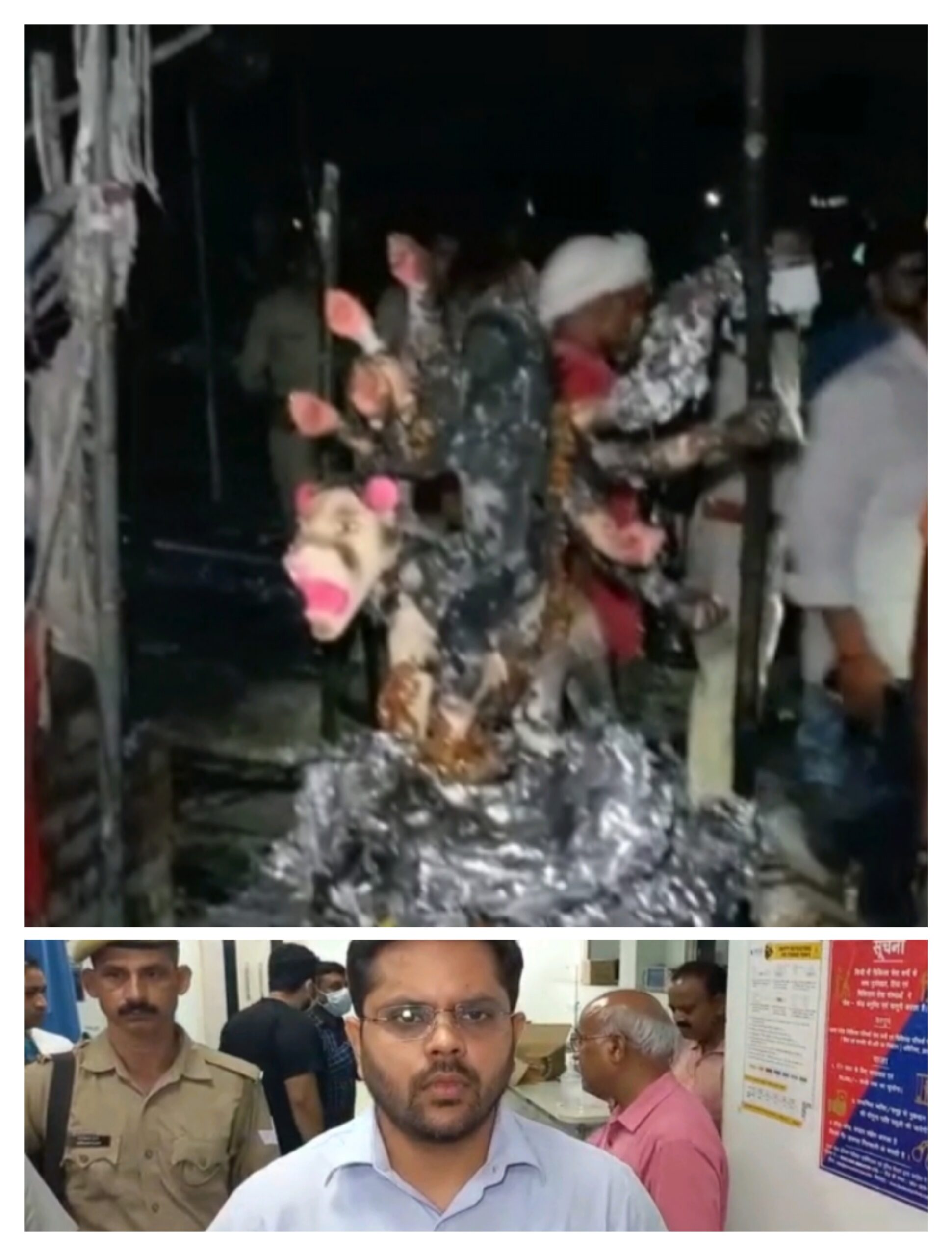जिलाधिकारी गौरांग राठी ने मीडिया से बात करते हुए कहा है कि जिस समय पंडाल में शॉर्ट सर्किट से आग लगी उसमें तकरीबन करीब डेढ़ सौ लोग थे। 35 लोग बुरी तरह झुलस गए हैं, जिसमें कइयों को सूर्या ट्रामा सेंटर आनंद अस्पताल और गोपीगंज सीएससी में इलाज के लिए भर्ती कराया गया। जिलाधिकारी ने बताया कि तकरीबन 20 लोगों को बीएचयू ट्रामा सेंटर रेफर किया गया है।