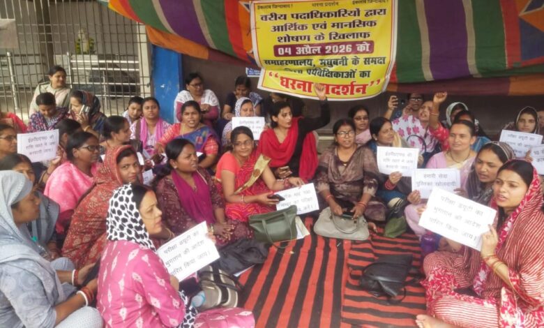 MADHUBANI:- समाहरणालय के समक्ष महिला पर्यवेक्षिकाओं का धरना, कहा- आर्थिक-मानसिक रूप से हम सभों को किया जा रहा प्रताड़ित